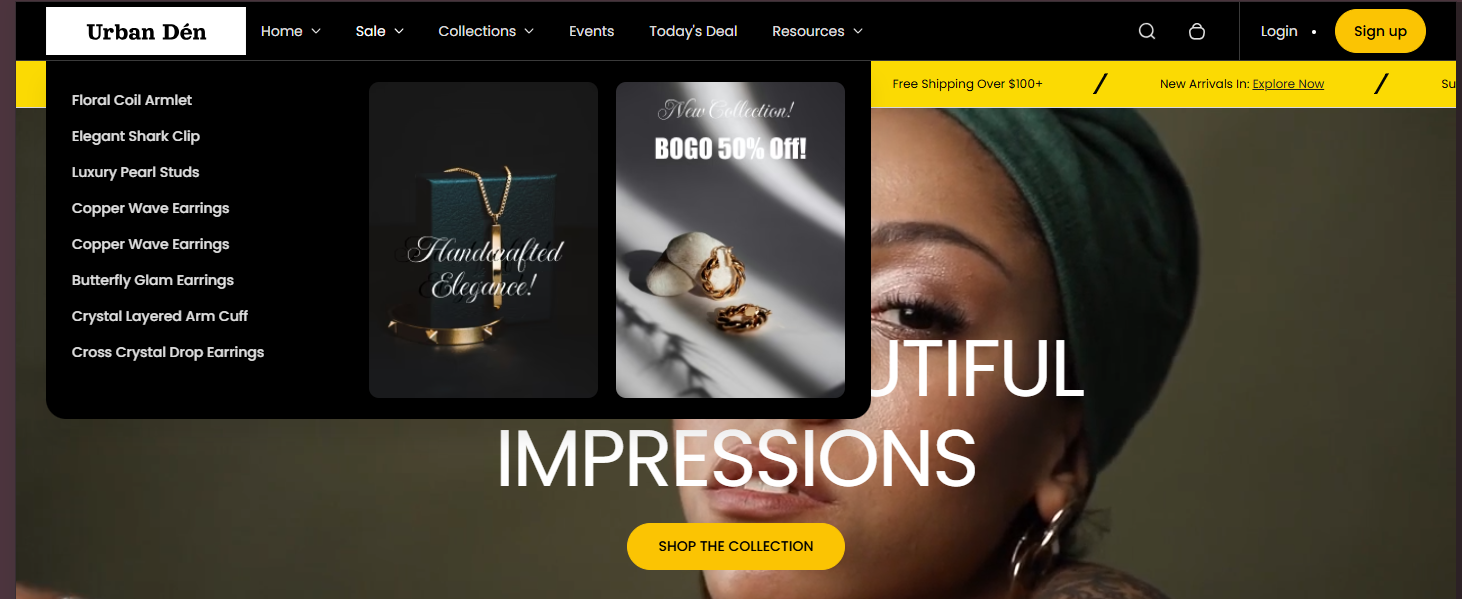 The Header section is designed to serve as the primary navigation and interaction hub at the top of your Shopify store's pages. This section is highly configurable, supporting features like search, social media links, customer account links, and shopping cart integration. It can be tailored to align with the brand’s style and functional needs.