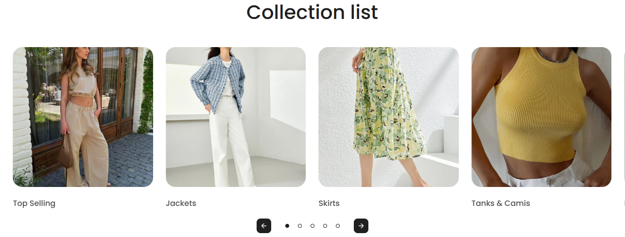 The "Collection List" section is designed to showcase multiple collections on your store’s page. This section is especially useful for highlighting different categories of products, allowing customers to easily navigate and explore various segments of your inventory.