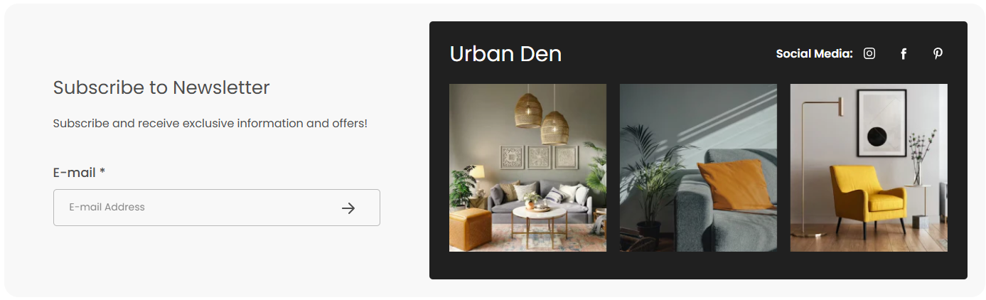 The "Email Signup" section is designed to engage visitors by inviting them to subscribe to newsletters. This section can be a pivotal tool for marketing campaigns, special offer distributions, and maintaining ongoing customer engagement.