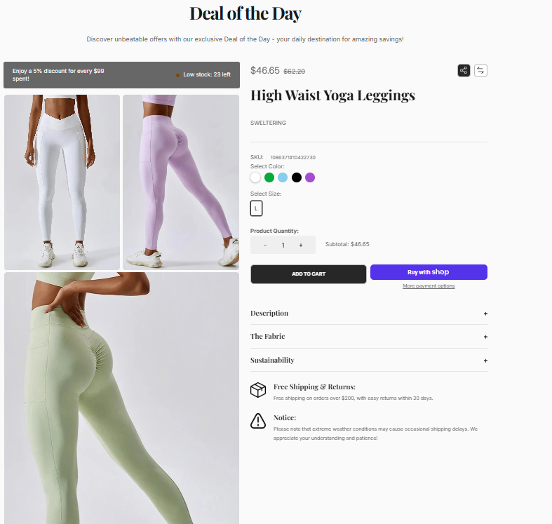 | Show Dynamic Checkouts | Toggle to display dynamic checkout buttons (e.g., PayPal, Apple Pay). |