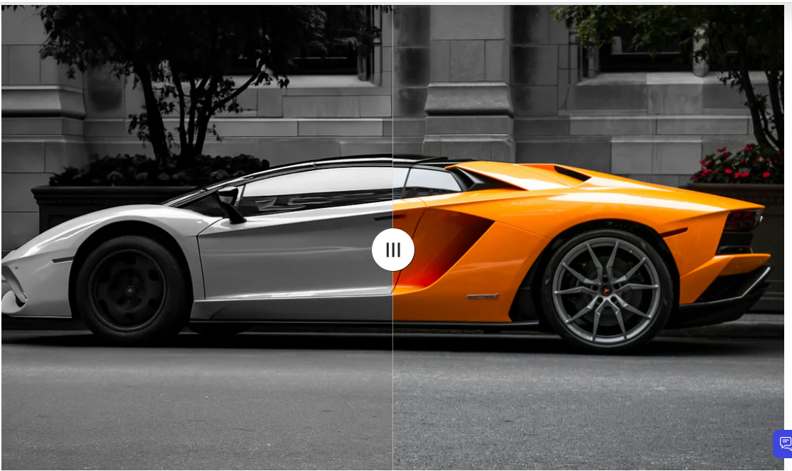 The Before/After section allows you to visually compare two images using an interactive slider. This feature is ideal for showcasing product transformations, such as results before and after using a service or product.