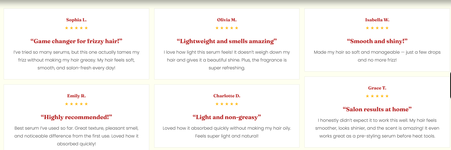 Displays the main testimonial/review text. |