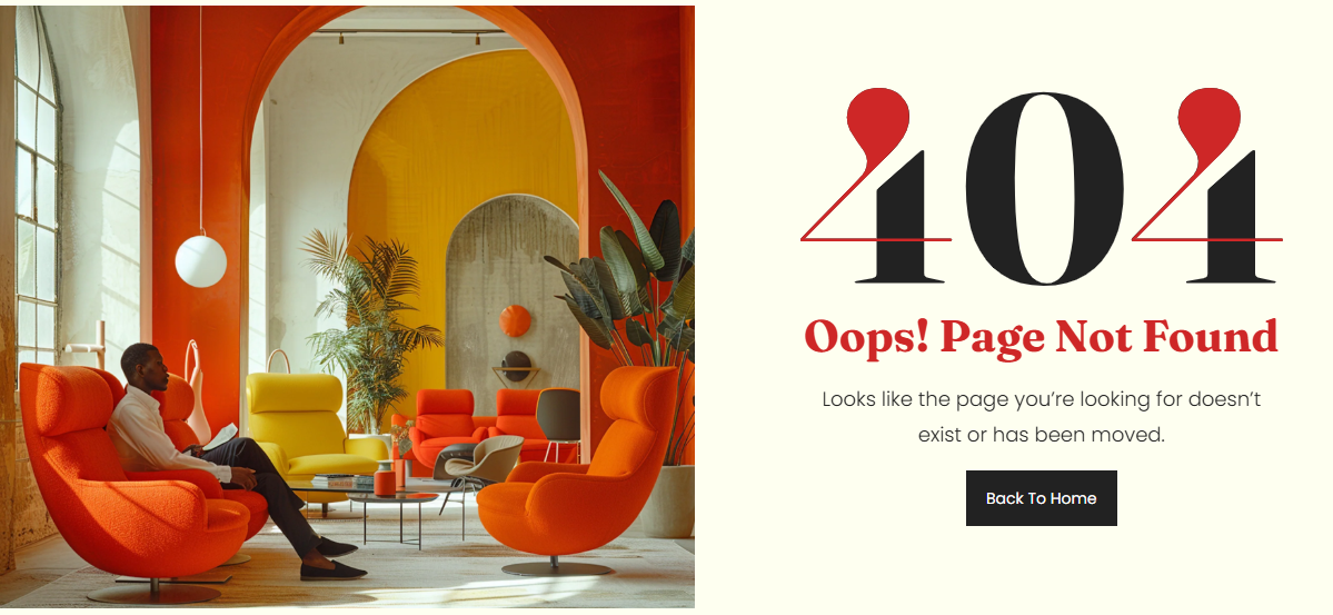 The Main 404 section is used on the “Page not found” (404) template to display an error message area. You can control the section height, container width, alignment, color scheme, and responsive spacing. The content itself is provided through a dedicated 404 content block (plus optional theme/app blocks depending on your setup).